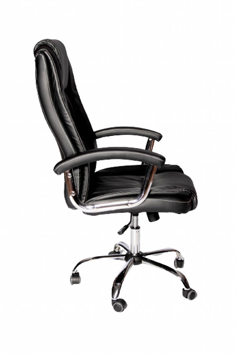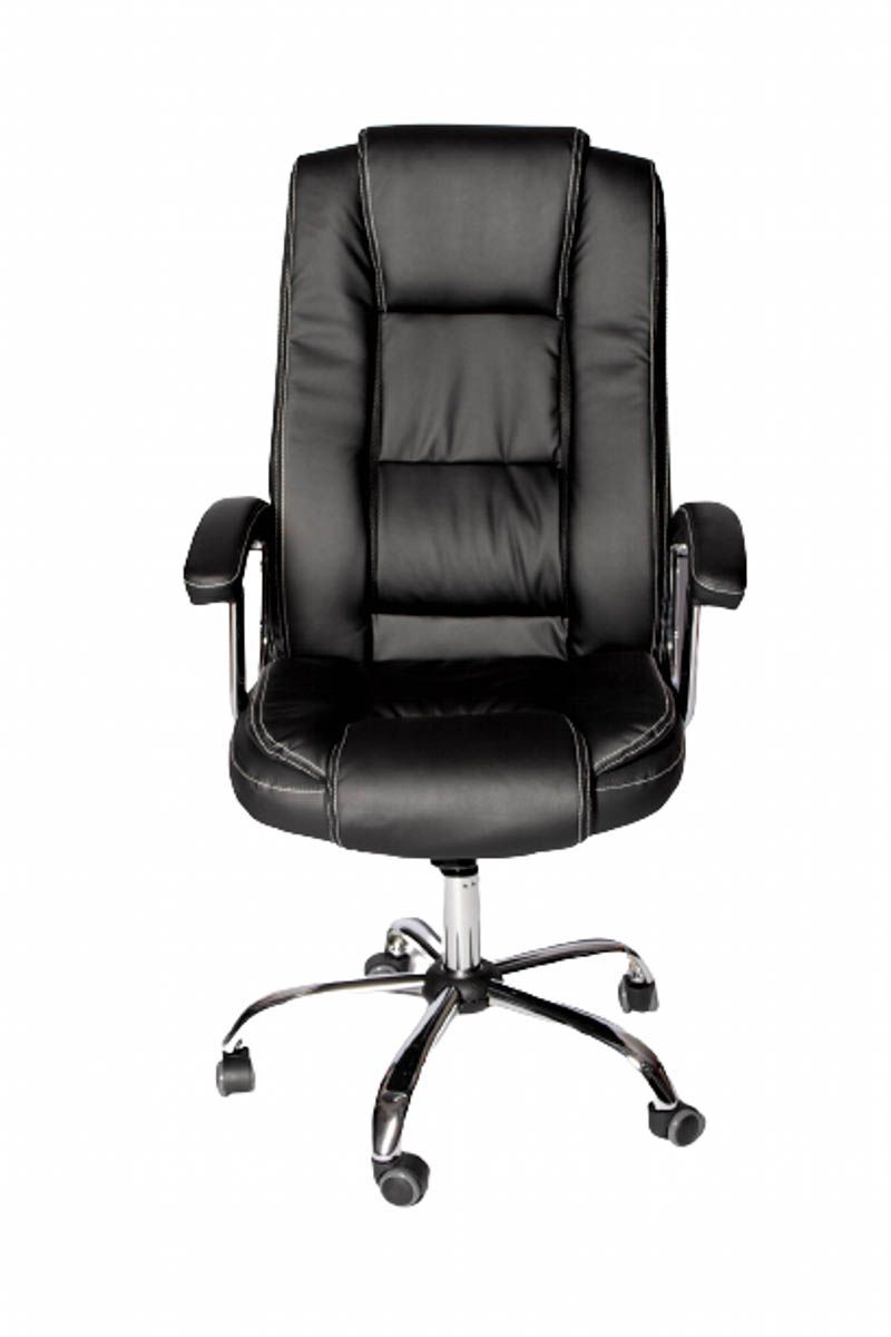 The contoured lumbar provides exceptional support for the lower-back, while the sculpted arms have pillow soft pads which provide added hand, wrist, and forearm comfort. The pneumatic gas lift adjusts the seat height by a simple flick of the lever. This Office chair in Black is a high-back, height-adjustable office chair with a PU leather seat and chromed steel base. The elegant and comfortable design of this office chair makes it perfect for a stylish and luxurious look.
