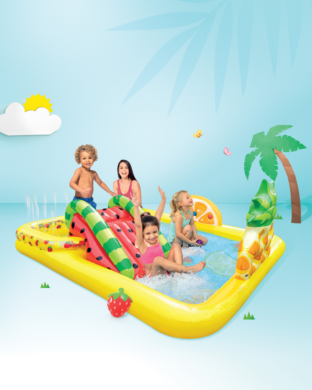 Jump into this fun two-in-one fruit themed pool for hours of splashing fun!